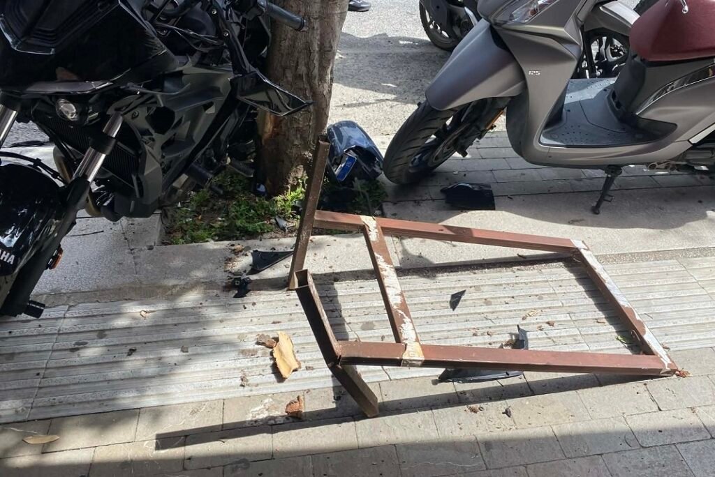 Ως υλικές απώλειες μετράμε δύο αυτοκίνητα και τέσσερα μηχανάκια, εκ των οποίων τα δύο υπέστησαν σοβαρές ζημιές. Επίσης , το ένα αυτοκίνητο, όπως διακρίνεται στη φωτογραφία, έχει εξαιρετικά σοβαρές ζημιές.