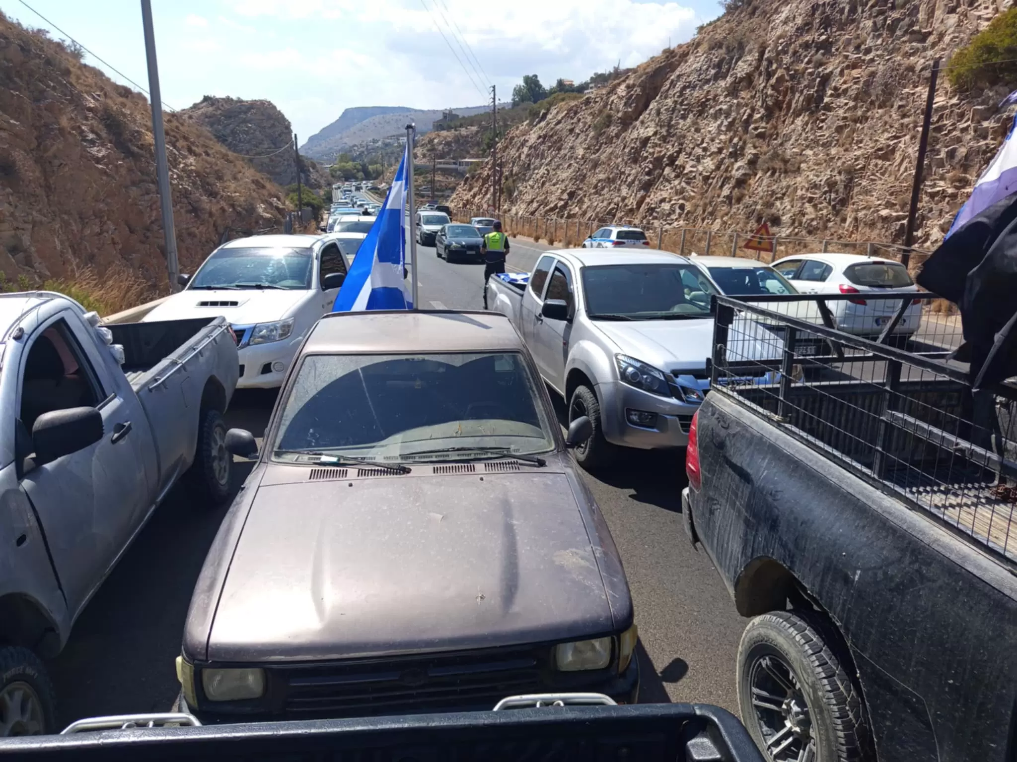 Συγκεκριμένα, οι αγρότες και οι κτηνοτρόφοι της Ανατολικής Κρήτης επέλεξαν αιφνιδιαστικά τον κόμβο στο Παλαιόκαστρο.
