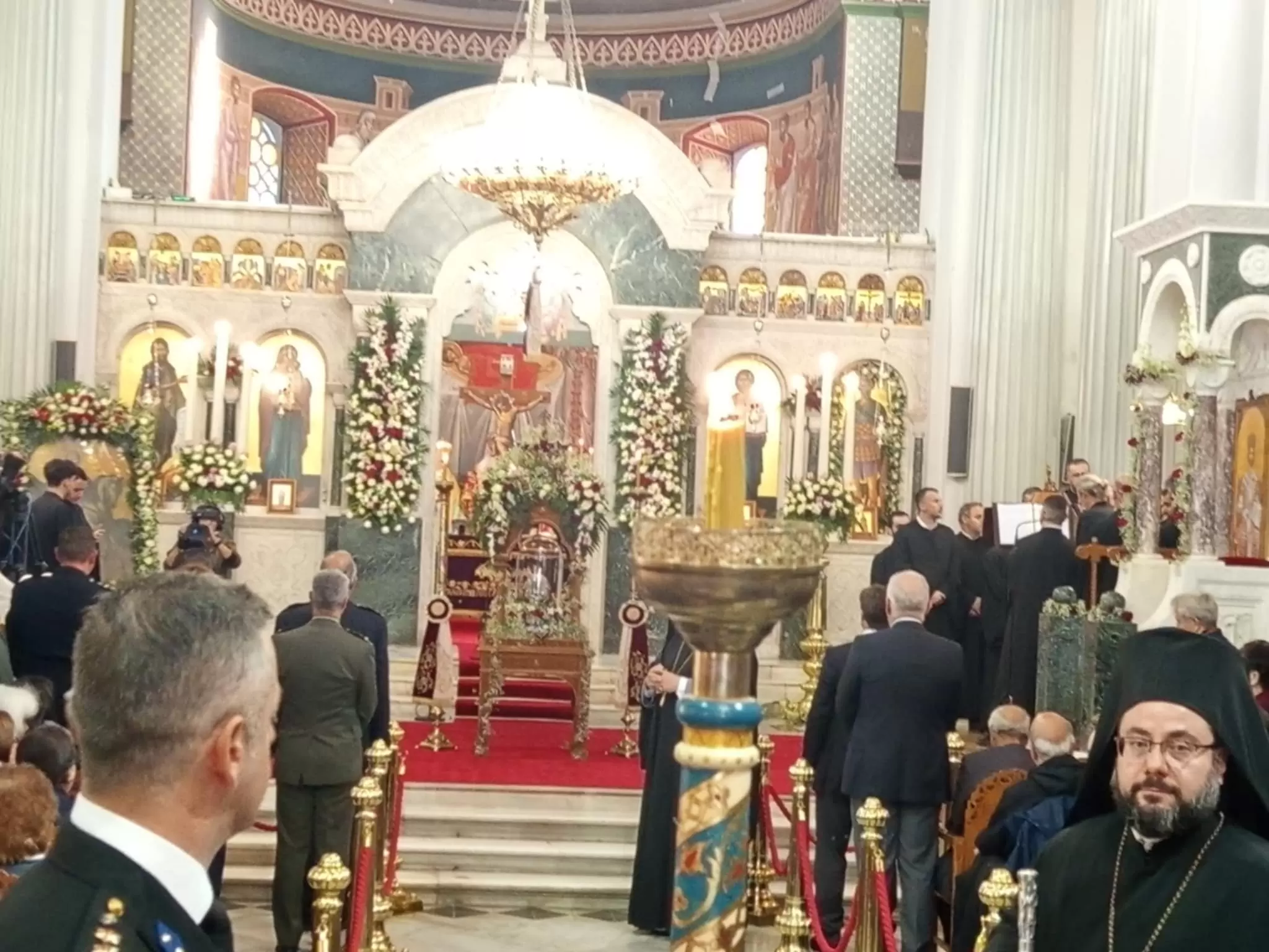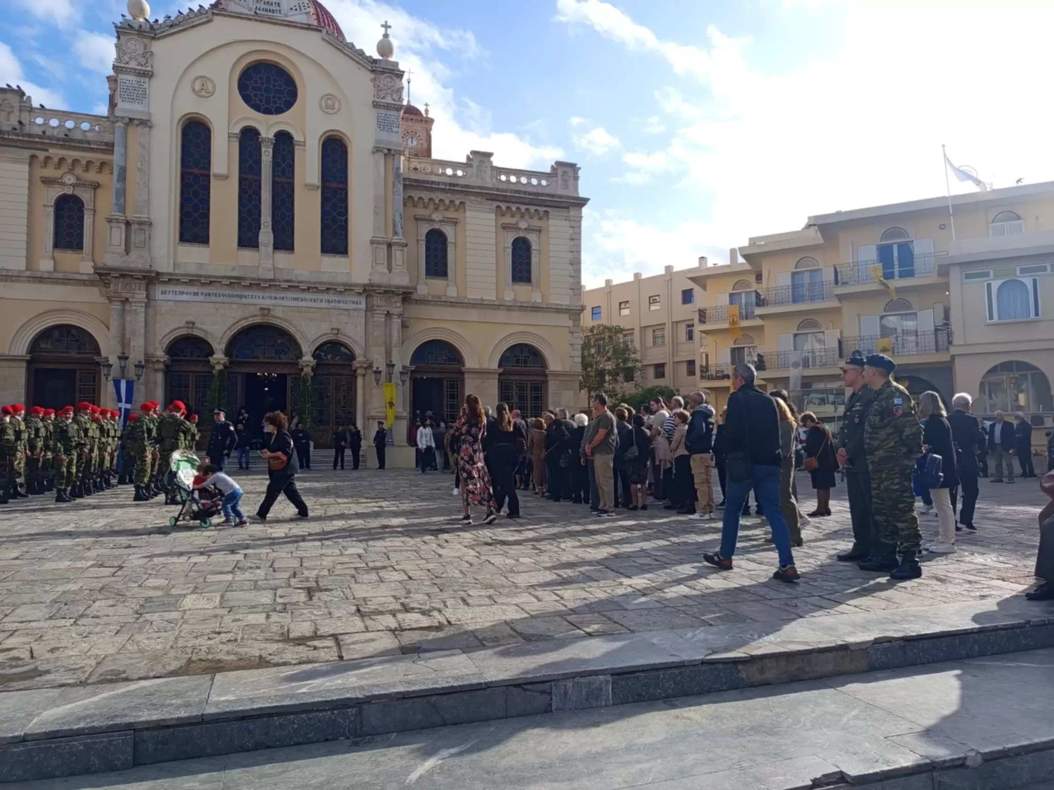 Στην πανηγυρική δοξολογία χοροστάτησε ο Σεβασμιότατος Αρχιεπίσκοπος Κρήτης, Ευγένιος, ενώ παρευρέθηκαν εκπρόσωποι της Εκκλησίας, των στρατιωτικών και πολιτειακών αρχών, αλλά και αρκετός κόσμος.