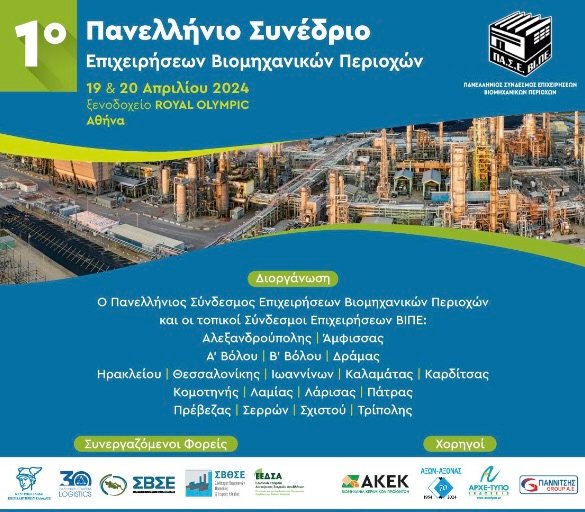 Με επίκαιρα θέματα και συμμετοχή βιομηχανιών από ολόκληρη την Ελλάδα, πραγματοποιείται στις 19 και 20 Απριλίου στην Αθήνα, το Πρώτο Πανελλήνιο Συνέδριο Επιχειρήσεων Βιομηχανικών Περιοχών.