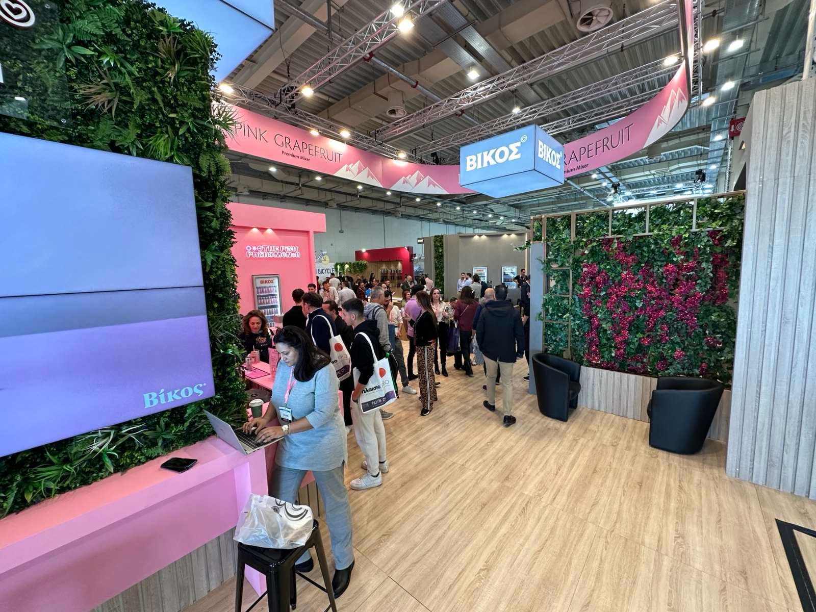 Στο Hall 1, περίπτερο Α02/Β01, η ΒΙΚΟΣ Α.Ε. συστήνει στο κοινό το εύρος των προϊόντων της και οι επισκέπτες του περιπτέρου έχουν την ευκαιρία να δοκιμάσουν απολαυστικά αναψυκτικά και το μοναδικό σε γεύση PINK GRAPEFRUIT.