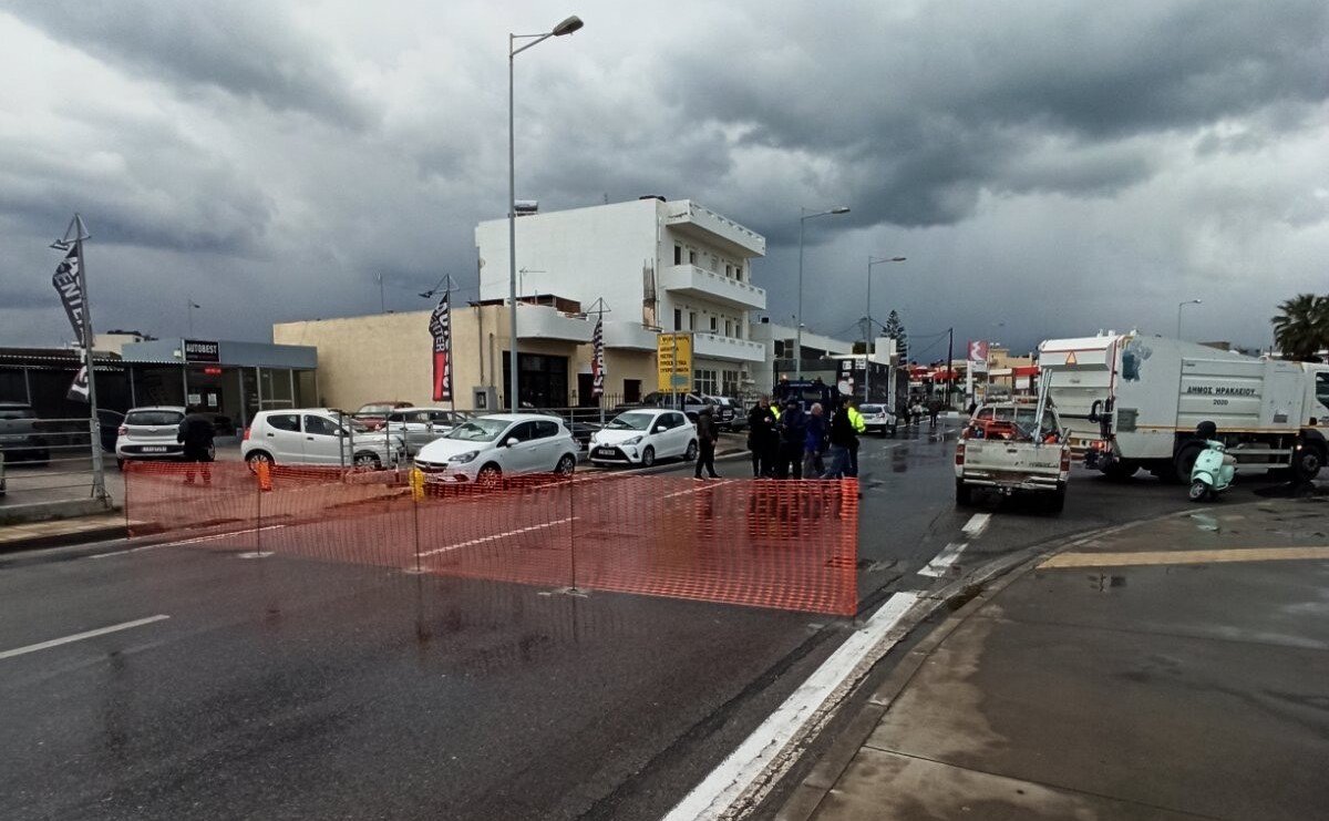 Παράλληλα, για λόγους προστασίας των διερχόμενων οδηγών, με απόφαση της Τροχαίας Ηρακλείου και τη συνεργασία της Δημοτικής Αστυνομίας, διεκόπη η κυκλοφορία στο τμήμα της οδού Σπ. Μουστακλή από τη συμβολή της με την παραλιακή λεωφόρο, έως και λίγο πριν τη συμβολή της με την οδό Λακωνίας».
