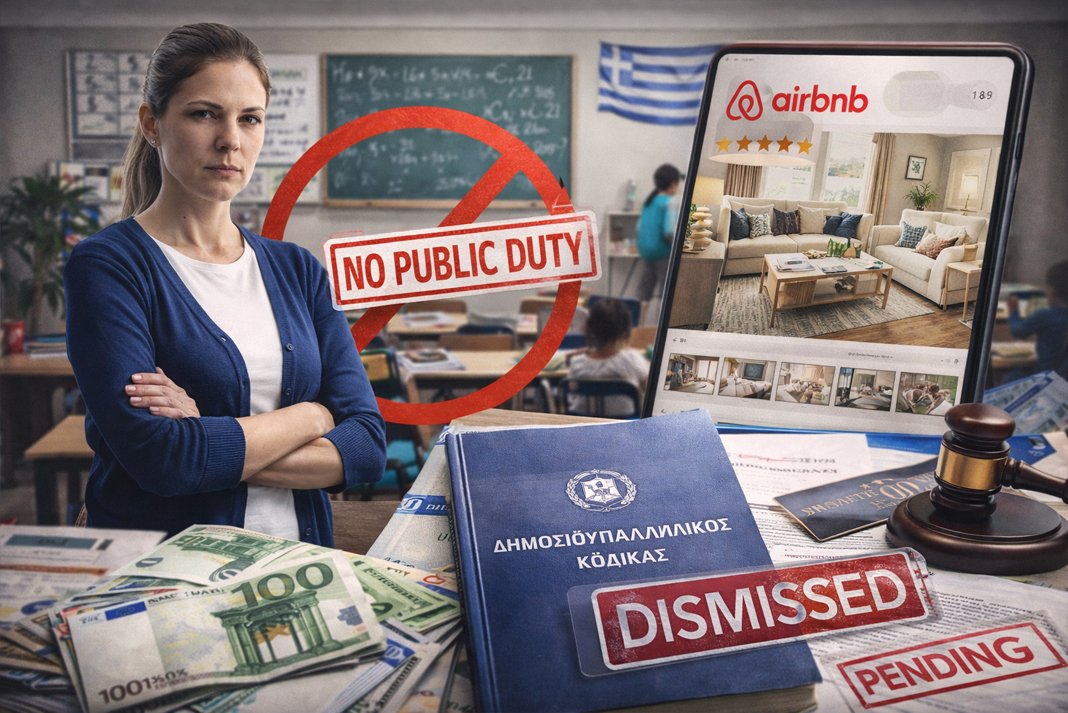 Το Υπουργείο Παιδείας ανακάλεσε την πρόσληψη αναπληρώτριας δασκάλας, καθώς διαπιστώθηκε ότι διατηρούσε ακίνητα τύπου Airbnb. Η απόφαση βασίστηκε στον Δημοσιοπαλληλικό Κώδικα που απαγορεύει την άσκηση εμπορικής δραστηριότητας από δημόσιους υπαλλήλους, αλλά και σε γνωμοδότηση του Νομικού Συμβουλίου του Κράτους.