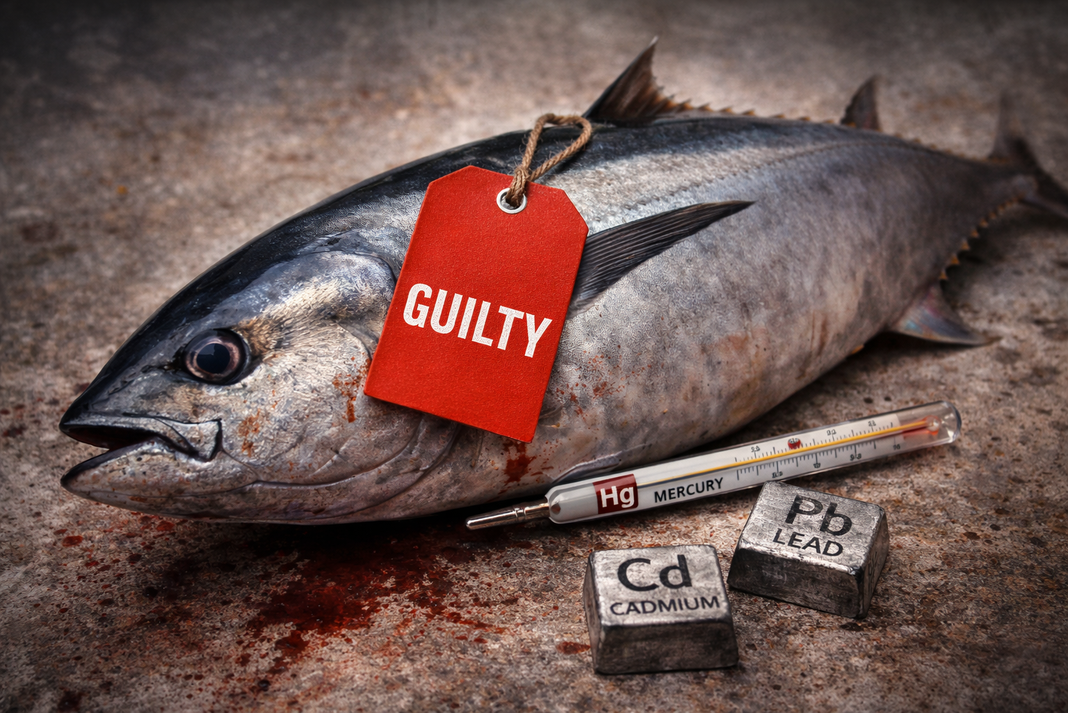Αντίθετα, ο τόνος εμφάνισε αυξημένες συγκεντρώσεις μεθυλυδραργύρου, της πιο τοξικής μορφής υδραργύρου, που πλησιάζει ή και υπερβαίνει το όριο της ΕΕ. Ελέγχθηκαν επίσης κάδμιο, μόλυβδος και αρσενικό, με τα περισσότερα είδη κάτω από νόμιμα όρια. Η εξαίρεση ήταν και πάλι ο τόνος, όπου οι δείκτες κινδύνου ήταν σχεδόν διπλάσιοι από τα προτεινόμενα ασφαλή επίπεδα.