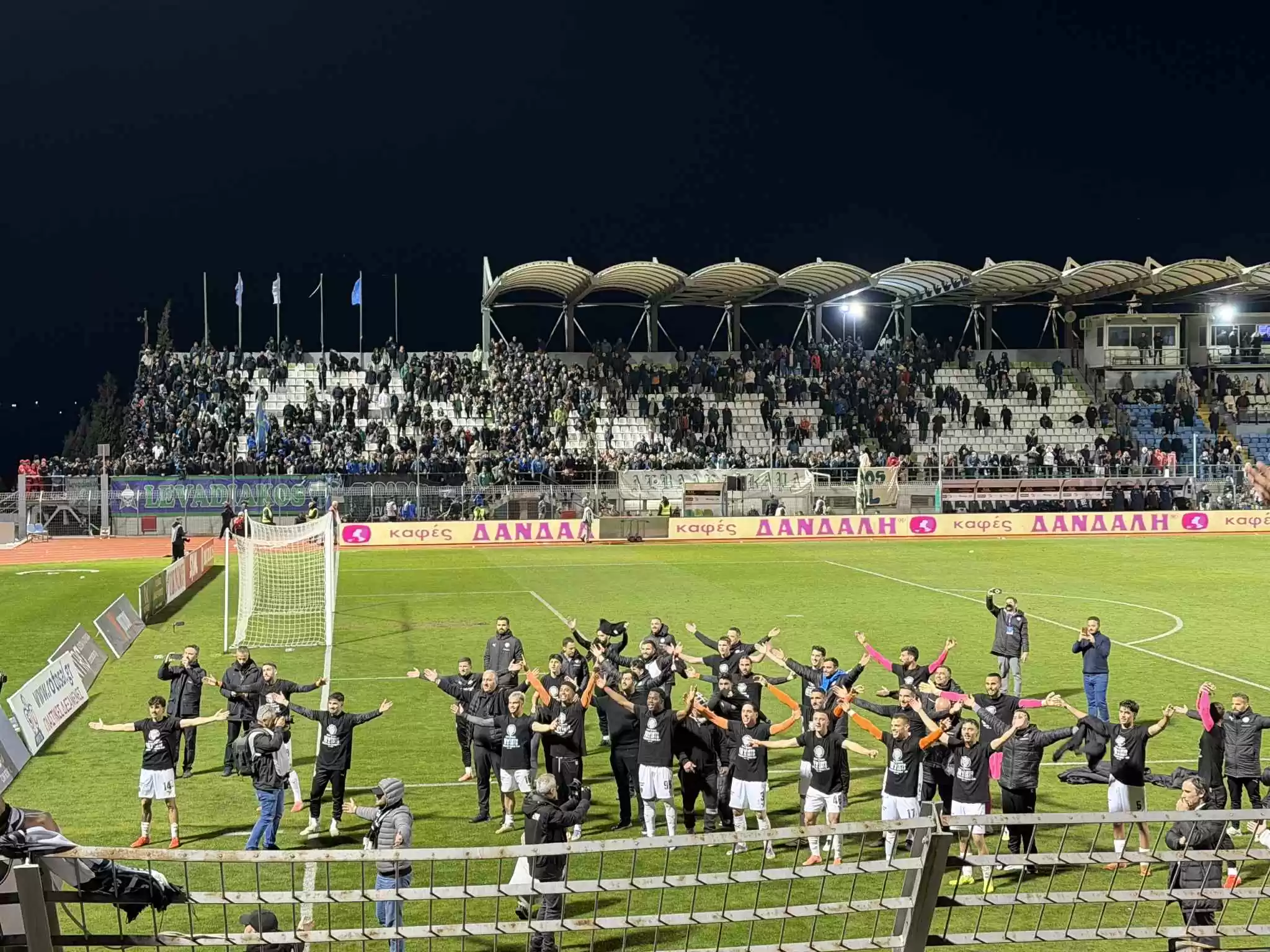 Με τη λήξη του αγώνα… έγινε πανικός, με τους φίλους του ηρακλειώτικου συλλόγου να μετατρέπουν σε «Γεντί Κουλέ» το γήπεδο και να γιορτάζουν μαζί με τους παίκτες.