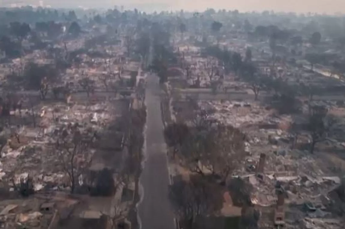 Βίντεο που τραβήχτηκε την Τετάρτη, παρουσιάζει μια εντελώς εγκαταλελειμμένη περιοχή, όπου τα σπίτια και οι δομές έχουν μετατραπεί σε στάχτες και ολόκληρα οικοδομιό τετράγωνα έχουν καεί ολοσχερώς.