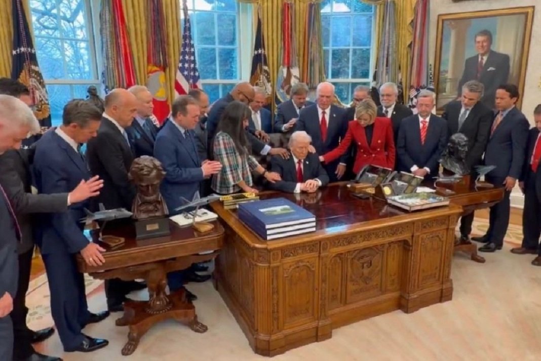 Οπως έγινε γνωστό από τις εικόνες που μεταδόθηκαν από τον Λευκό Οίκο, κατά τη διάρκεια της συνάντησης, οι παρευρισκόμενοι πάστορες στάθηκαν γύρω από τον Αμερικανό Πρόεδρο απλώνοντας τα χέρια τους προς το μέρος του, ενώ εκείνος καθόταν στο γραφείο του με το κεφάλι σκυμμένο σε στάση προσευχής.