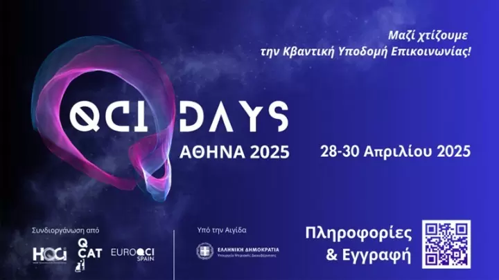 Το πανευρωπαϊκό συνέδριο “QCI Days Αθήνα 2025” θα πραγματοποιηθεί από 28 έως 30 Απριλίου 2025 στο Ίδρυμα Ευγενίδου, υπό την αιγίδα του Υπουργείου Ψηφιακής Διακυβέρνησης, με την υποστήριξη της Γενικής Γραμματείας Τηλεπικοινωνιών και Ταχυδρομείων.