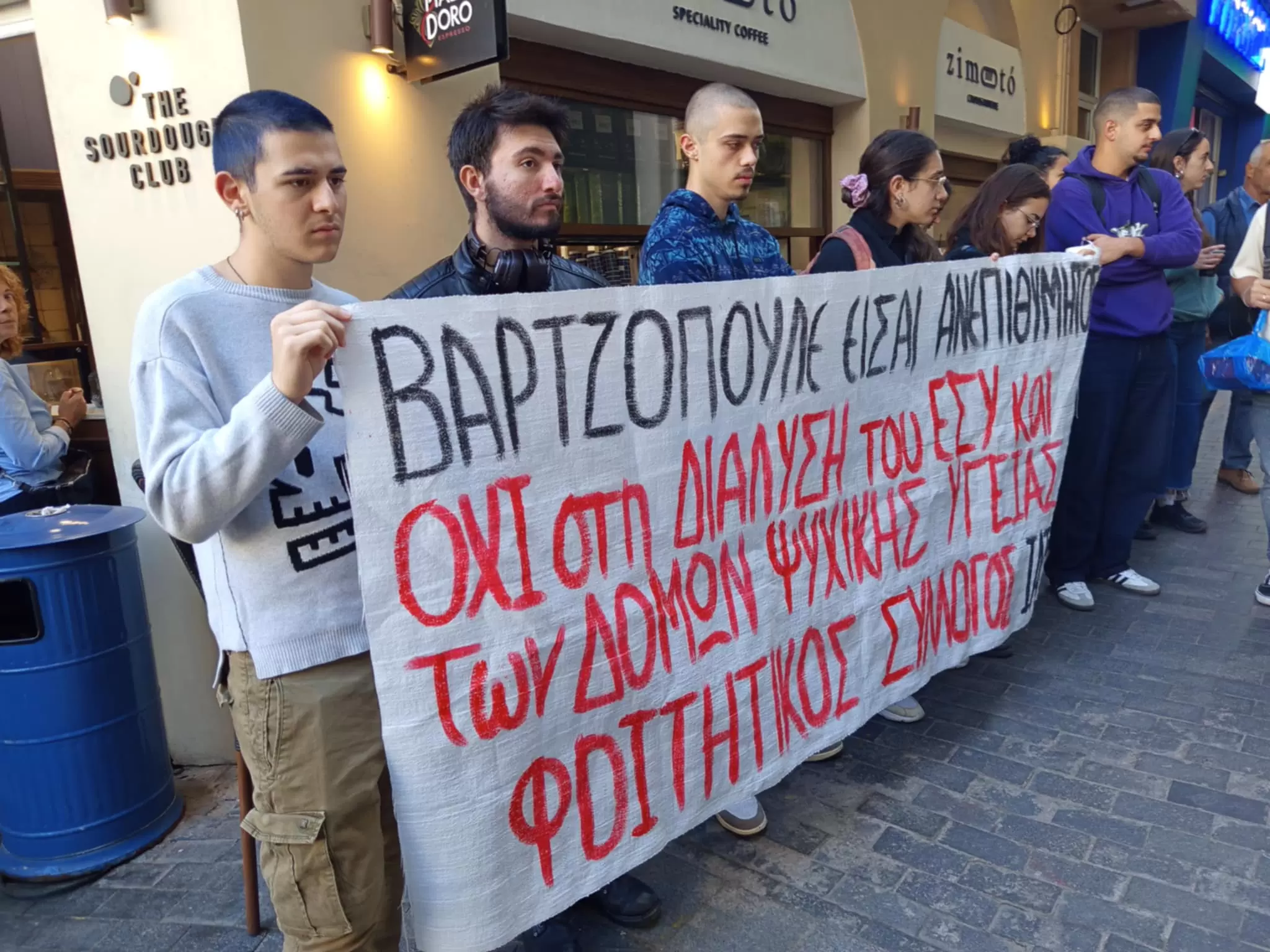Η αντιπρόεδρος του Φοιτητικού Συλλόγου Ιατρικής Μαρία Ηγουμενίδη, χρησιμοποίησε επίσης σκληρή γλώσσα: «Η κυβέρνηση προσπαθεί να διαλύσει τη δημόσια υγεία. Προσπαθεί να διαλύσει τις δομές ψυχικής υγείας. Είναι αδιανόητο σε όλη την Κρήτη να υπάρχει μία Ψυχιατρική Κλινική. Και φτάνουμε στο σημείο να βλέπουμε το νοσηλευτικό προσωπικό να εξαντλείται και να βρίσκεται στα όρια της εξόντωσης. Δεν πρόκειται να ανεχτούμε αυτή την πολιτική. Θα συνεχίσουμε να παλεύουμε για τη δημόσια υγεία και για τα πτυχία μας, μέχρι το τέλος».