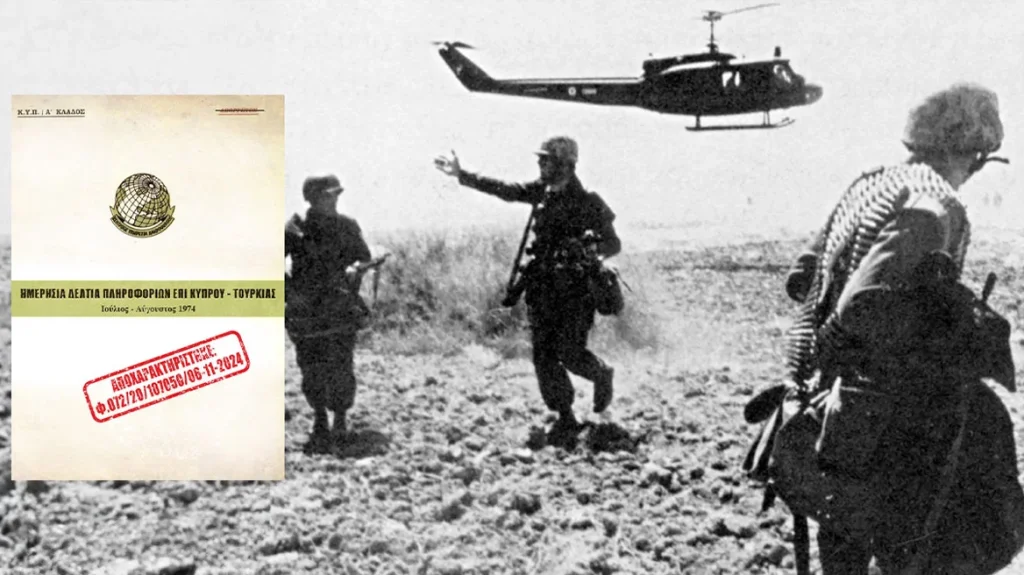 Η Εθνική Υπηρεσία Πληροφοριών (ΕΥΠ) δημοσιοποίησε σήμερα αποχαρακτηρισμένα ενημερωτικά δελτία που αφορούν τα τραγικά γεγονότα του Ιουλίου και Αυγούστου του 1974 στην Κύπρο, τα οποία μέχρι πρότινος ήταν απόρρητα διαβαθμισμένα έγγραφα.
