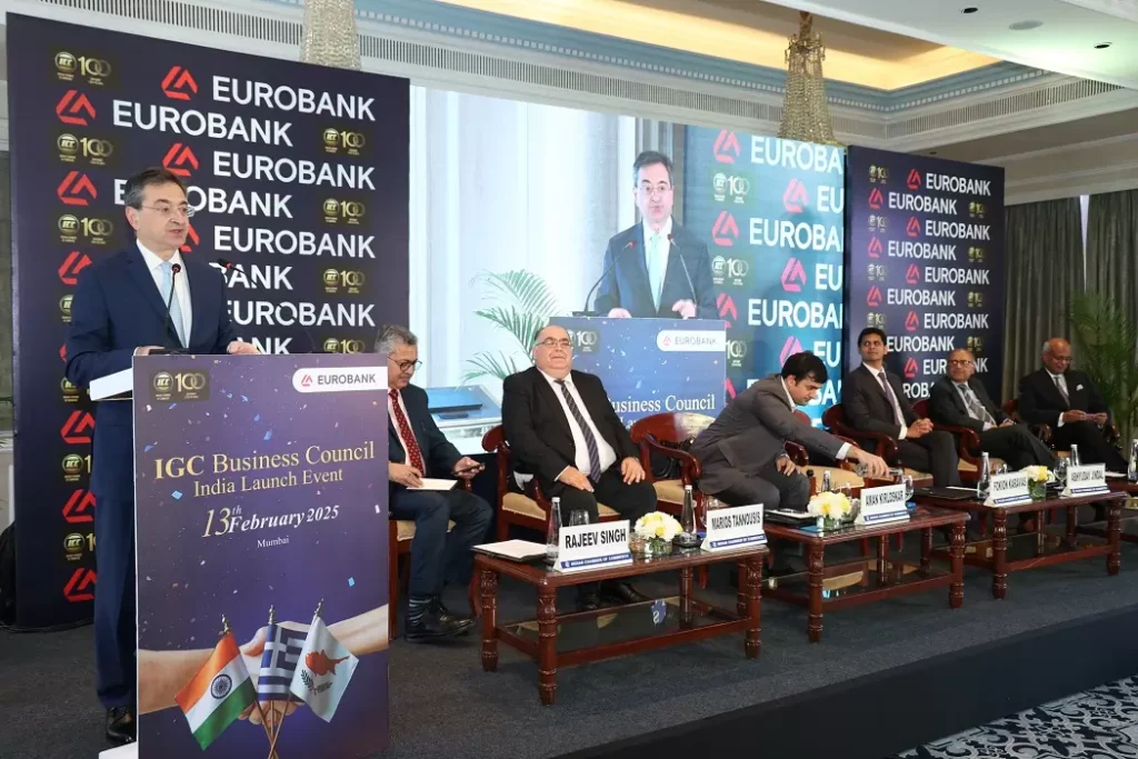Το Επιχειρηματικό Συμβούλιο Ινδίας – Ελλάδας – Κύπρου (IGC) εγκαινιάστηκε επίσημα σήμερα στο Taj Mahal Palace στη Βομβάη, σηματοδοτώντας ένα σημαντικό βήμα για την ενίσχυση των οικονομικών δεσμών στις τρεις χώρες. Η πρωτοβουλία-ορόσημο ακολουθεί την υπογραφή Μνημονίου Συνεργασίας (MoU) μεταξύ της Eurobank και του Ινδικού Εμπορικού Επιμελητηρίου (ICC) τον Σεπτέμβριο 2024.