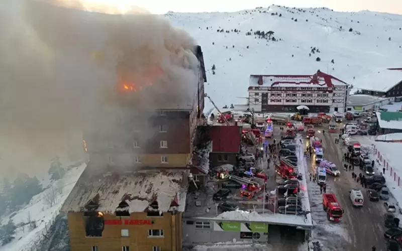Η πυρκαγιά στο 12όροφο ξενοδοχείο Grand Kartal, το οποίο βρίσκεται στον πολύ γνωστό προορισμό χειμερινού τουρισμού Καρτάλκαγια, περίπου 300 χλμ δυτικά της Κωνσταντινούπολης και 180 χλμ από την Άγκυρα, ξέσπασε στις 3:27 τα ξημερώματα. Την ώρα εκείνη οι περισσότεροι πελάτες του ξενοδοχείου ήταν στα δωμάτιά τους και οι φλόγες τους βρήκαν στον ύπνο, γεγονός που εκτιμάται ότι αύξησε τον αριθμό των θυμάτων.