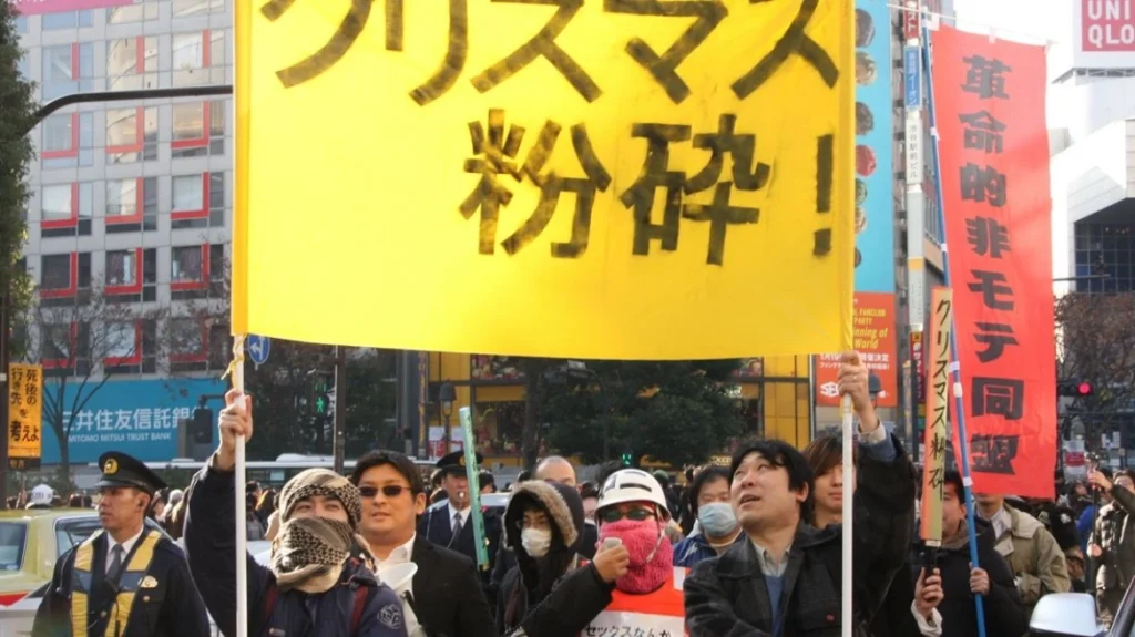 Η μακροχρόνια ομάδα διαμαρτυρίας, της οποίας το σύνθημα είναι «συντρίψτε τα Χριστούγεννα», διαδηλώνει στους δρόμους του Τόκιο κάθε παραμονή Χριστουγέννων τα τελευταία 17 χρόνια.