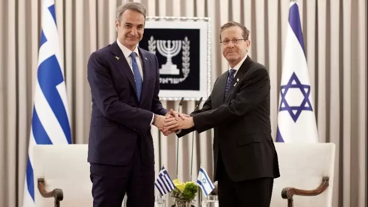Ο πρωθυπουργός Κυριάκος Μητσοτάκης συναντήθηκε σήμερα με τον Πρόεδρο του Ισραήλ, Ισαάκ Χέρτσογκ, στην Ιερουσαλήμ και αφού αναφέρθηκε στην στρατηγική εταιρική σχέση των δύο χωρών είπε: «Επιτρέψτε μου να προσθέσω τη φωνή μου σε εκείνους που ζητούν την άμεση και άνευ όρων απελευθέρωση όλων των ομήρων.