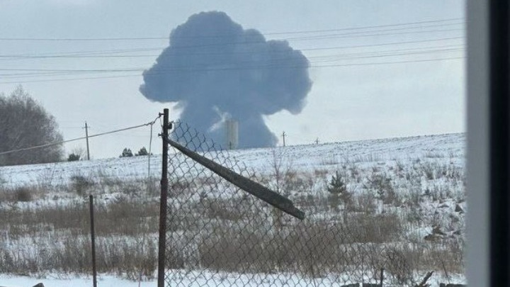Βίντεο που αναρτήθηκε στο Telegram από το Baza, ένα κανάλι που συνδέεται με τις υπηρεσίες ασφαλείας της Ρωσίας, δείχνει ένα μεγάλο αεροσκάφος να πέφτει και να εκρήγνυται σε μια μεγάλη μπάλα φωτιάς.