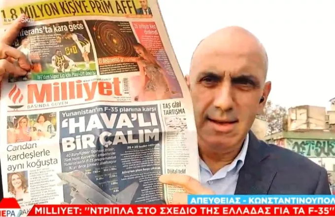 Όπως μεταδίδει ο Μανώλης Κωστίδης στο σημερινό πρωτοσέλιδο της τουρκικής εφημερίδας Μillyet  αναγράφεται χαρακτηριστικά «Ντρίπλα το σχέδιο της Ελλάδας για τα F-35»