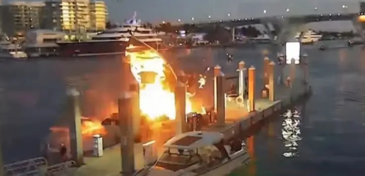 Το μικρό σκάφος εξερράγη γύρω στις 6 το απόγευμα τοπική ώρα και στη συνέχεια η φωτιά εξαπλώθηκε στη μαρίνα του Λόντερντεϊλ, σύμφωνα με το βίντεο του NBC 6.