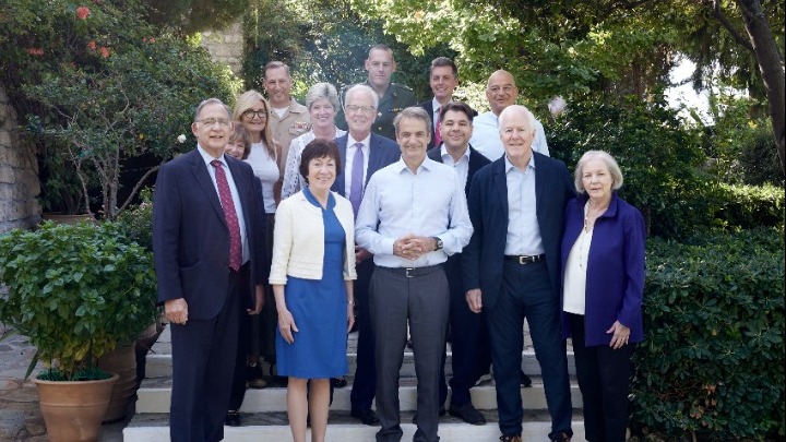 Πρωινό εργασίας στην οικία του στα Χανιά είχε ο πρωθυπουργός, Κυριάκος Μητσοτάκης με ομάδα Αμερικανών Γερουσιαστών του Ρεπουμπλικανικού Κόμματος και συγκεκριμένα τους Jerry Moran, Susan Collins, John Boozman, John Cornyn, John Hoeven, που συμμετέχουν, μεταξύ άλλων, στις Επιτροπές Κατανομής Πόρων, Πληροφοριών και Ενέργειας της Γερουσίας των Ηνωμένων Πολιτειών, παρουσία του υπουργού Άμυνας, Νίκου Δένδια και του πρέσβη των ΗΠΑ, George Tsunis, σύμφωνα με ενημερωτικό σημείωμα από το γραφείο Τύπου του γραφείου του πρωθυπουργού.